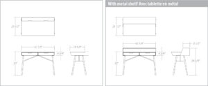 - Dessus en chêne rouge massif (3/4” d’épaisseur).